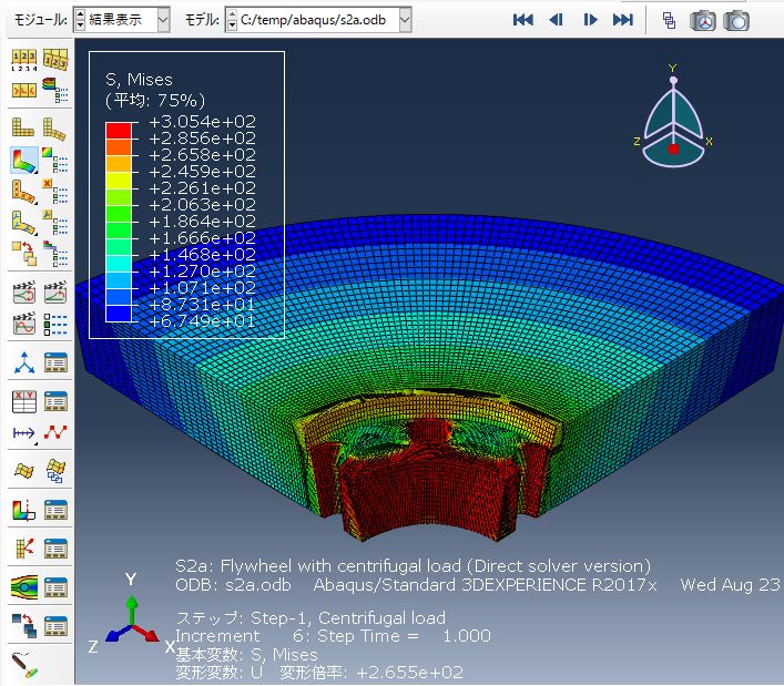 ツールボックスにある等高線を左クリックすると、 等応力線図が表示されます。