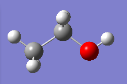 ウィンドウでどれか1つの水素原子上でマウス左ボタンをクリックすると、水酸基に置き替わり、エタノール分子になります。 角度が悪く後ろの水素分子が見えない場合があります。 その際は次項のマウス操作を実行ください。
