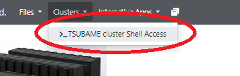 Selecting "Clusters > TSUBAME cluster Shell Access", you can login to TSUBAME with. Multiple terminals can be opened.