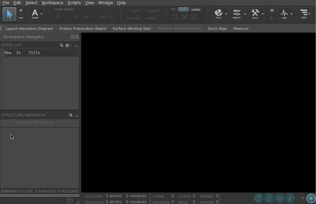 ワークスペースはリガンドなどの低分子構造やタンパク質の立体構造などといった中~大規模分子構造を可視化する領域です。